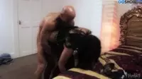 In a darkened room, the muscular guy stands poised with his massive erection in hand, waiting for the perfect moment to blindfold the trusting woman before him.His biceps bulging with strength and power, he approaches her gently yet firmly, guiding her hands above her head to secure the blindfold, rendering her completely helpless and at his mercy.The sensual anticipation is palpable as she feels her world go dark, her other senses amplifying in the absence of sight.As she stands before him vulnerable and eager, he guides his throbbing erection between her lips, his fingers holding her head firmly yet tenderly in place.She can't help but respond to his command, opening wide and letting him take control, the feeling of being dominated both exciting and exhilarating for the woman.The muscular man's deep voice whispers sweet nothings into her ear as he begins to explore her mouth with his engorged member, the oral stimulation setting the stage for their intimate encounter.The blindfold creates a perfect erotic atmosphere, enhancing their senses and intensifying every touch, every moan, and every sigh.With each passing second, the muscular guy's confidence grows, his dominant presence increasing as he skillfully uses his tongue to tease her clitoris, eliciting gasps of delight from his willing partner.The scent of their combined desire fills the room, creating a seductive cocoon around them as they succumb to the power of the blindfolded experience.As the woman's orgasm edge is reached, the muscular man pulls away, taking the hint from her eager mouth and guiding himself into her tight wet pussy.The feeling of fullness overwhelms the woman, each thrust bringing her closer to the edge of ecstasy, as he pulls at the blindfold to create a connection that transcends their physical union.As she clings to him for support, her body quivers from the intensity of their connection, desperate for a release just beyond her grasp.The muscular guy continues to dominate her with his expert use of his powerful and engorged cock, leaving her helpless yet deeply satisfied by their passionate love-making.Finally, as he reaches the pinnacle of arousal, the muscular man pulls out and comes all over her ass and pussy, adding another layer to their shared pleasure.Their orgasms intermingle with the scent of his release, sealing their intimate moment in time, forever.The blindfold is removed, revealing the truth behind the intense and thrilling experience, and they share a passionate kiss - both completely sated and fulfilled from their erotic adventure together.